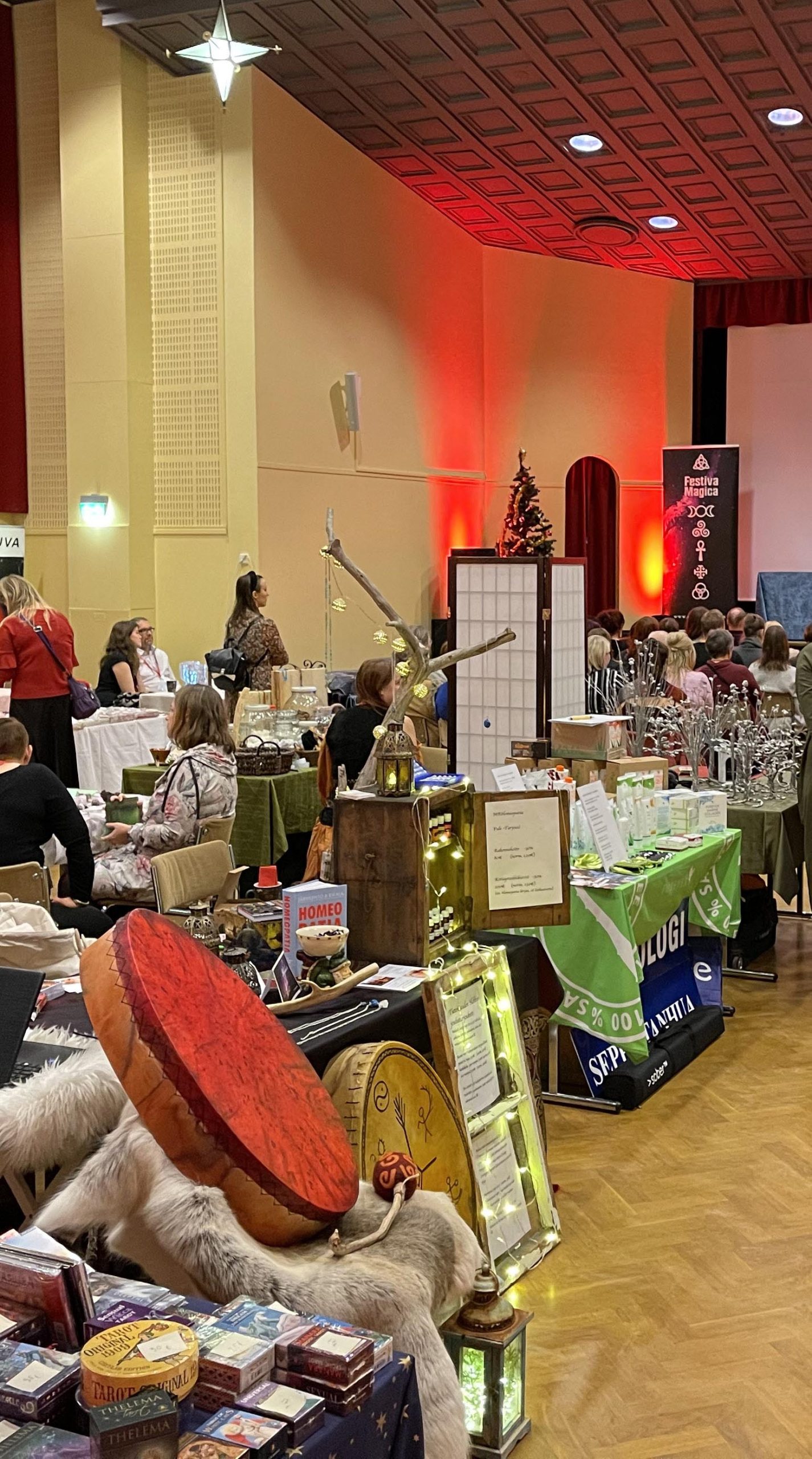 Näytteilleasettajapaikkaan kuuluu 1 kpl/päivä kahvi/tee -lippuja Kahvioon. Liput saatte Infopisteestä sisääntulosta. Aalto-salin lämpiössä Festiva Magican osallistujia palvelee Juurikkasaari Catering.